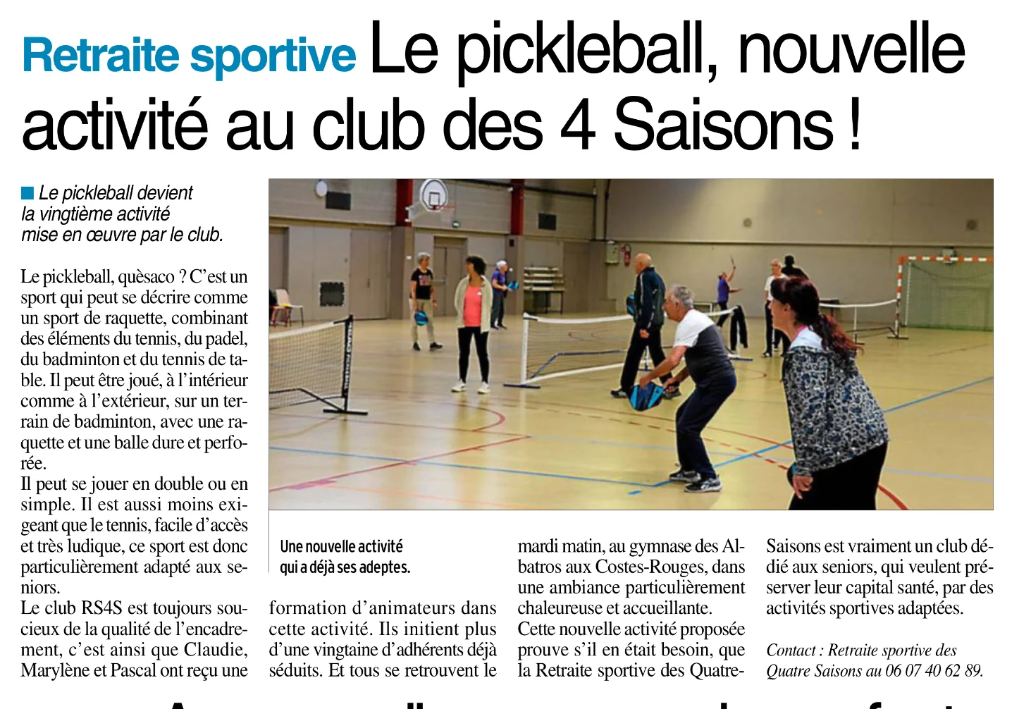 Février 2025 Activité Pickleball Article Centre Presse Jean C.