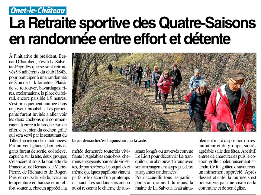 Mars 2025 Repas Rando Resto La Salvetat Peyrales Article presse Jean C.