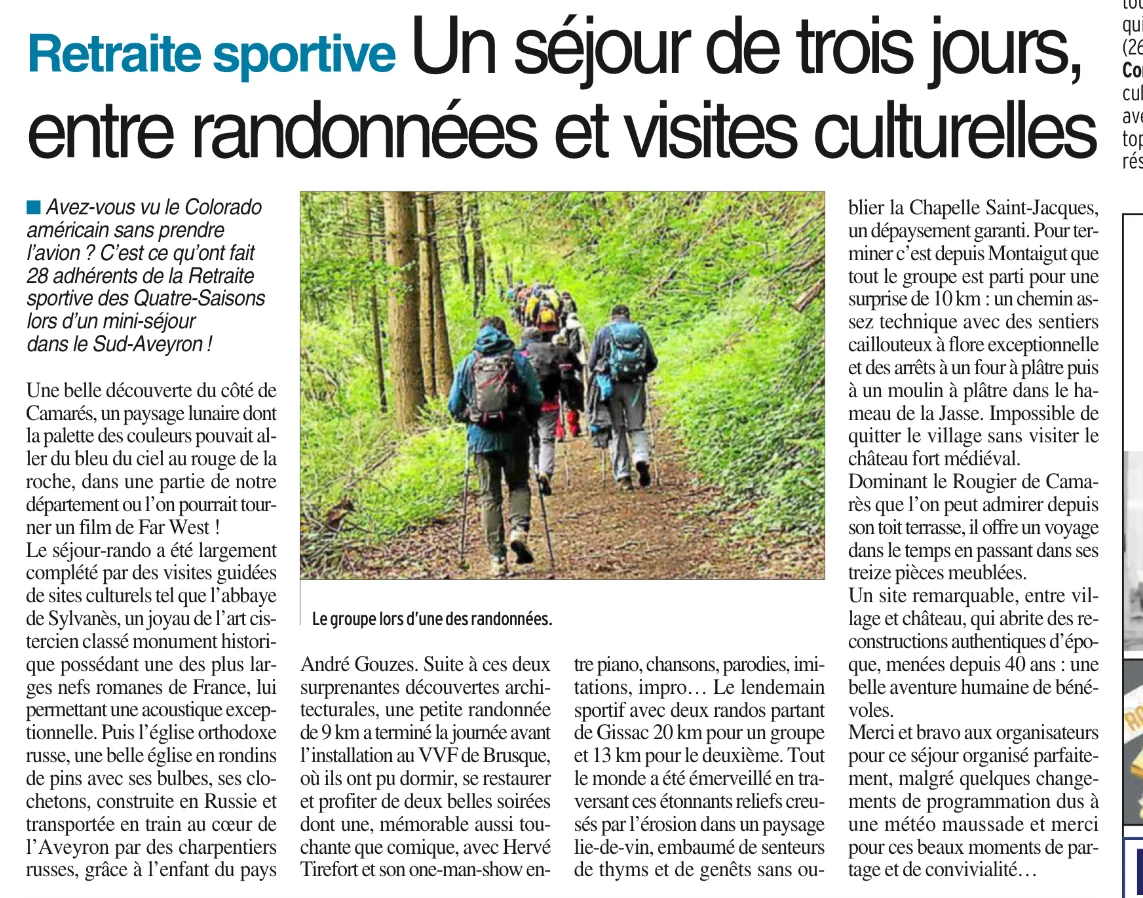 Mai 2025 Séjour Brusque Article presse Françoise C.