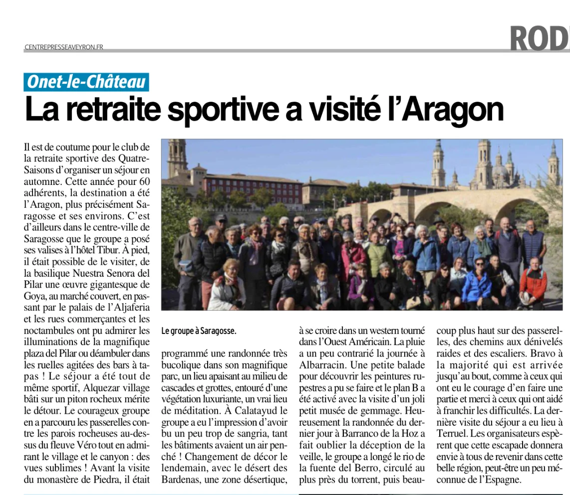 Septembre 2024 Séjour en Aragon Article Presse Françoise C.