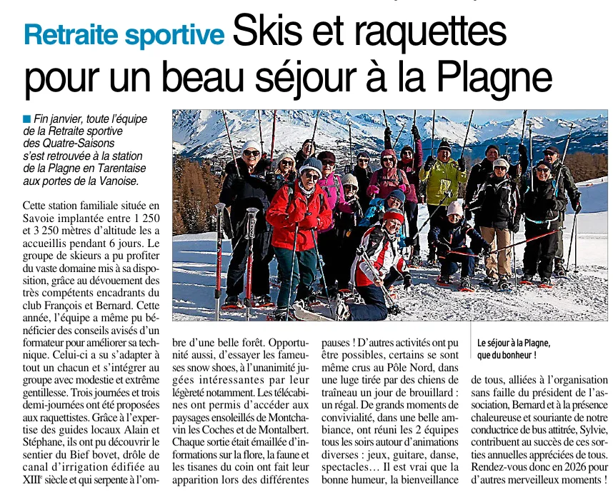Janvier 2025 Séjour neige Article presse Colette G.